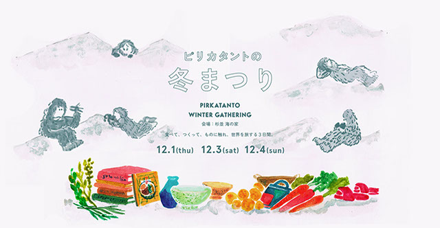 「食べて、つくって、ものに触れ、世界を旅する三日間」と題されたこの冬まつりは、アメリカやヨーロッパで買い付けられたやきものや、丹精込められて育てられた野菜を購入することができたり、台湾料理の本の出版記念として一夜限りの食堂がオープンしたり、山形の山奥で暮らす山伏の方によるお正月飾りのワークショップがあったりと、多国籍的な魅力盛りだくさんなイベントで、大盛況だったというのも頷けます。イベントを企画したのはピリカタントの、料理人である西野優ちゃん。季節を大切にし、新鮮なハーブやスパイス、野菜をふんだんに使って、心に太陽があたっているような心地になるすばらしい料理をつくる人です。東京を中心にさまざまなイベントでお料理を作られているので機会があればぜひ、優ちゃんのお料理を食べていただきたいです!